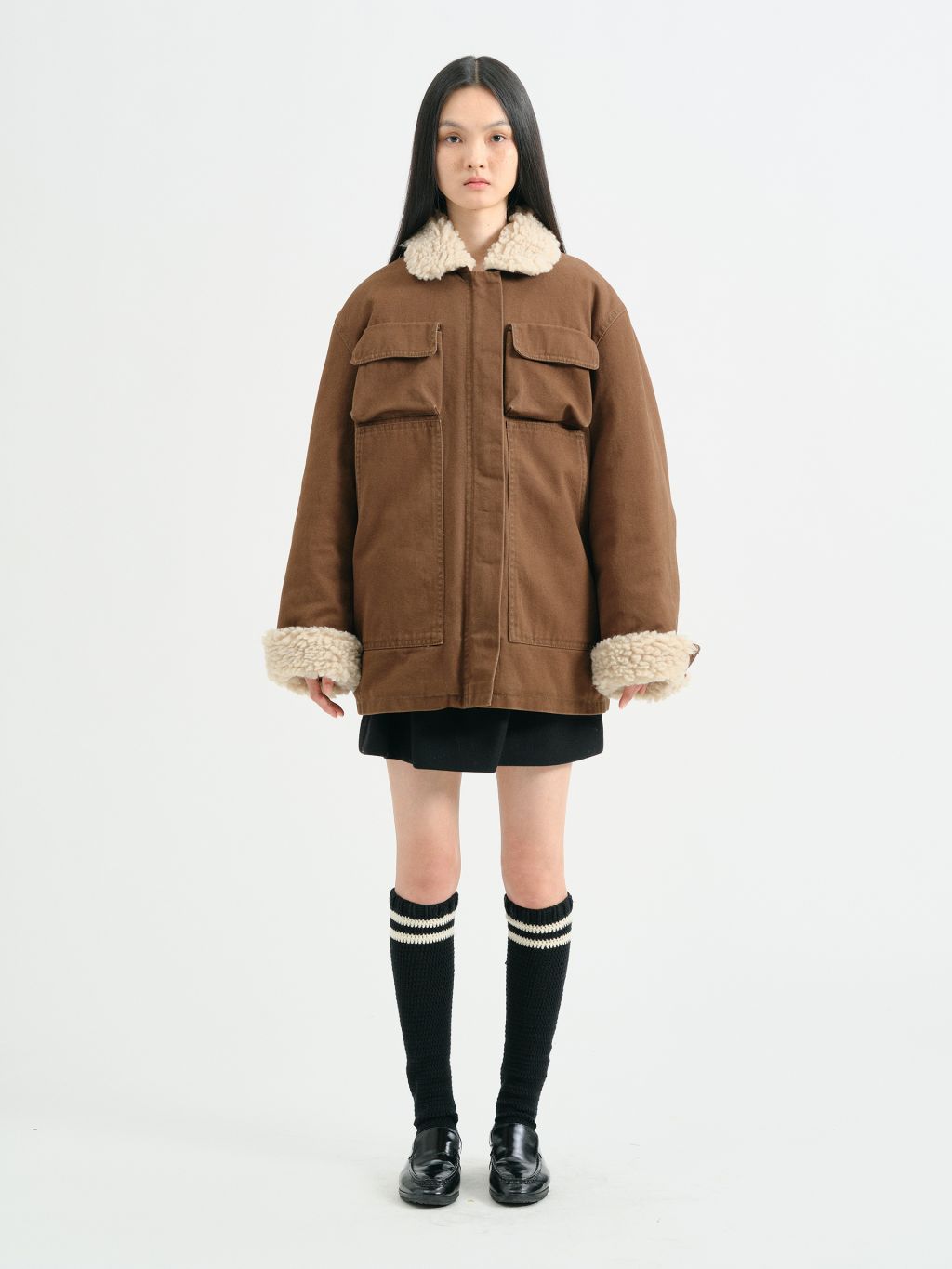 워싱 트윌 면 소재의 오버핏 워크 자켓