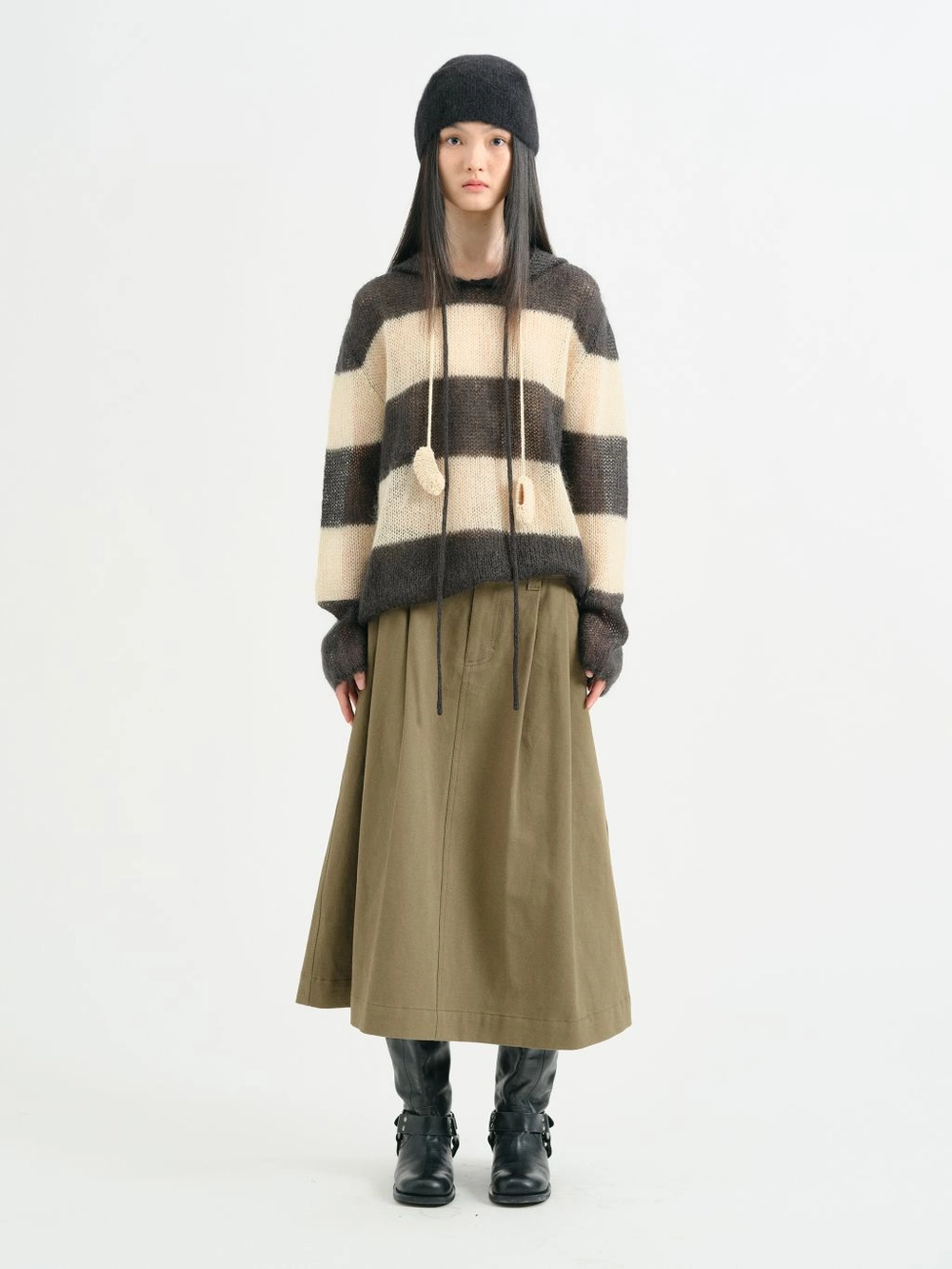 길게 내려오는 후드 스트링 디테일